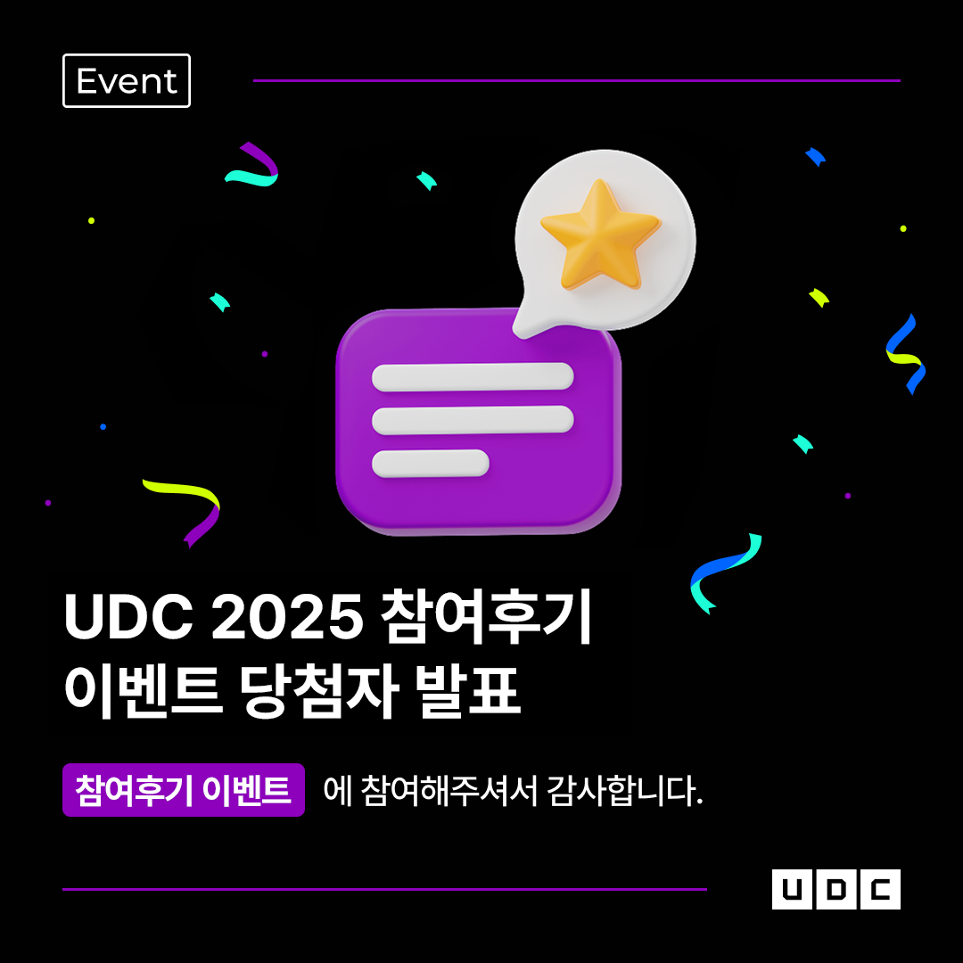 📌 당첨자 발표는 UDC 2025 공식 홈페이지 공지사항, 인스타그램 등 공식 채널에서 확인하실 수 있습니다.