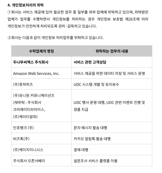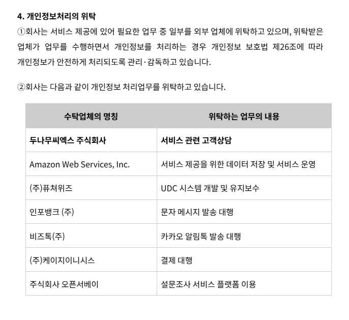 - 제4조(개인정보처리의 위탁): 수탁업체 현행화